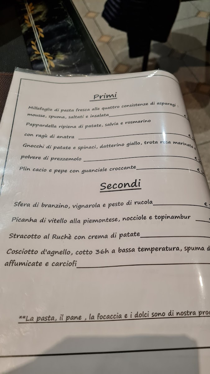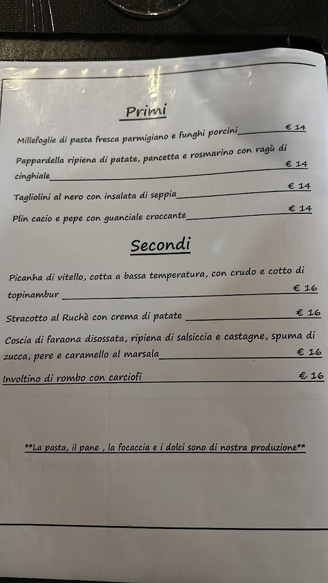Among the secondi, the Stracotto al Ruchè and Rombo in Porchetta stand out for their depth and refined use of local ingredients. The dishes bring robust, yet nuanced flavors, complemented by seasonal sides such as topinambur and caramelized apple compote. Customers praise the harmonious flavor pairings, quality produce, and attentive service, creating an intimate, relaxed atmosphere.